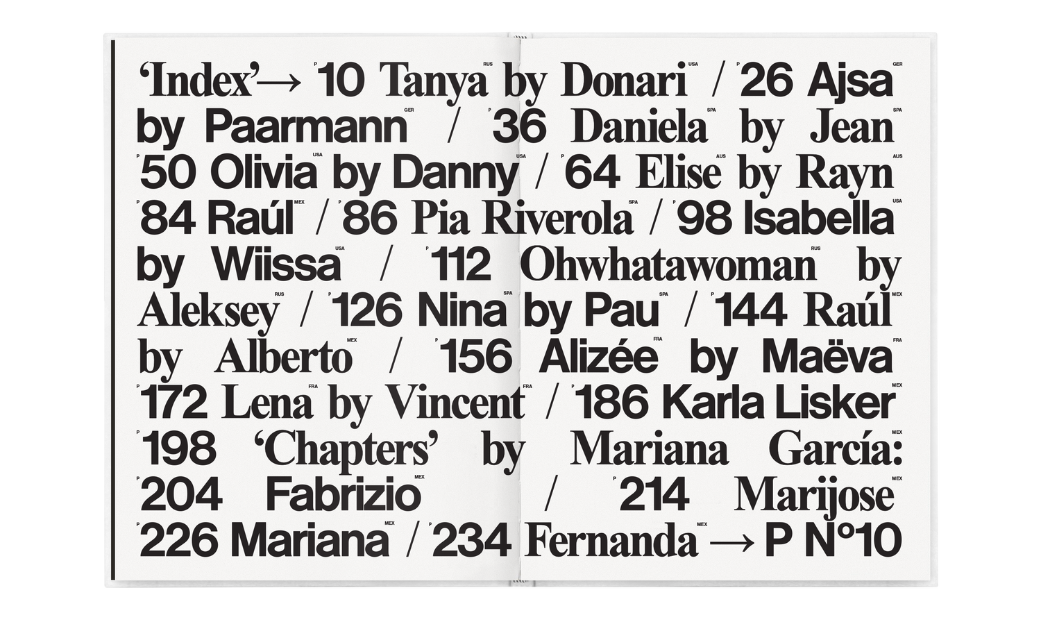 Featuring: Elise Zecevic by Rayn Jermain / Isabella Carr by Wiissa / Alizée Gamberini by Maëva Gamberini / Tanya Kizko by Donari Braxton / Fabrizio, Fernanda, Mariana & Marijose by Mariana García / Rik Bracho / Raúl Mena by Alberto Pinto / Raúl Salazar / Alejandra Guilmant by Karla Lisker / Nina Urgell by Pau Carrete / Ajsa Selimovic by Marcus Paarmann / Daniela Aldana by Jean Ambrojo / Olivia Taylor by Danny Scott Lane / Ohwhatawoman by Aleksey Burcev / Lena Simonne by Vincent Girardot / Pia Riverola